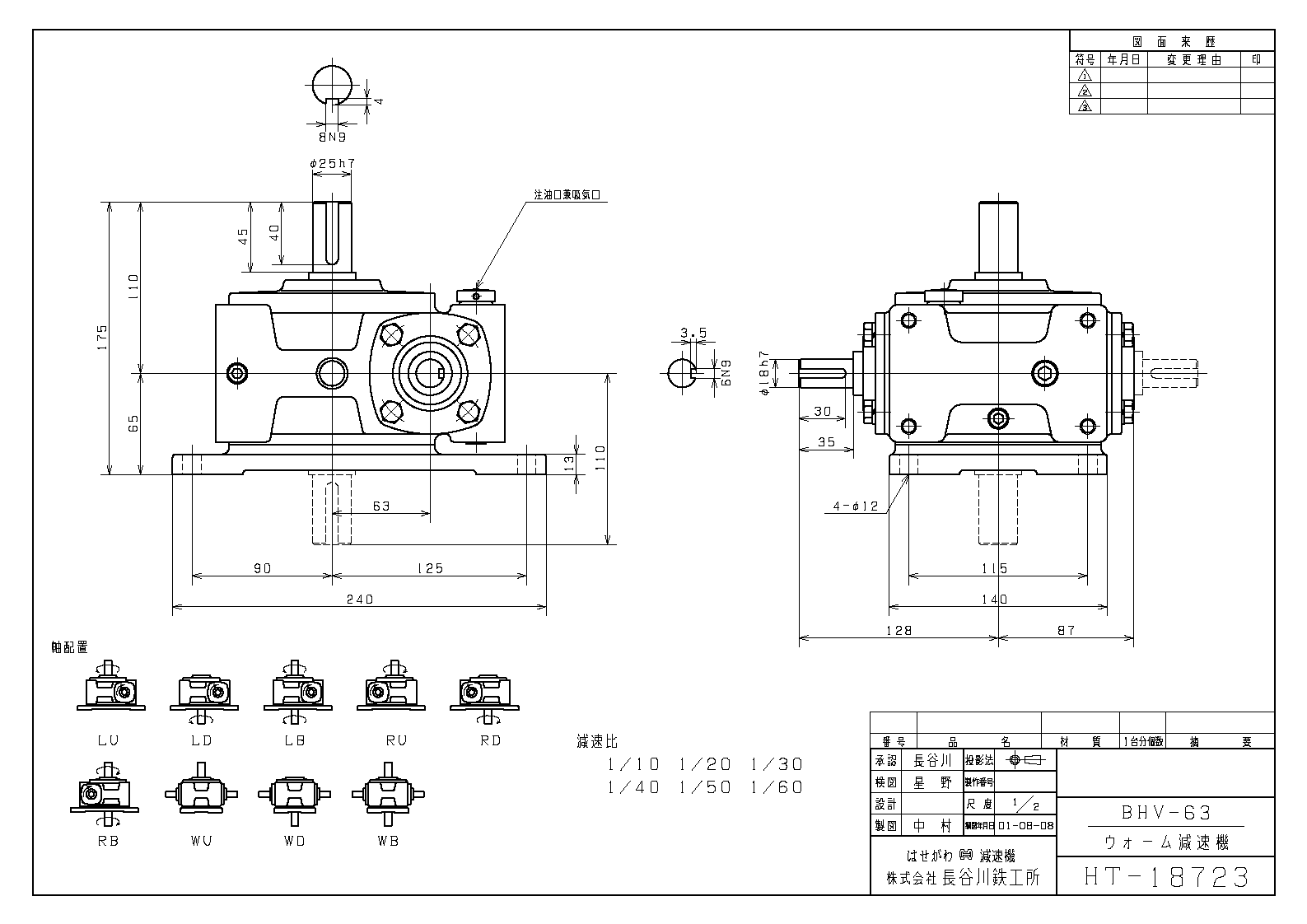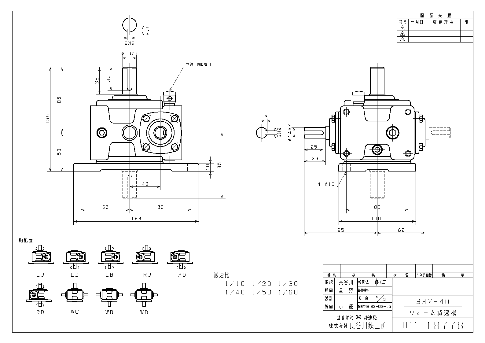 | BHV | 入力 | ベアリング | 30203 | 30203 | 320/28 | 320/28 | 320/28 | 30206 | 30206 |